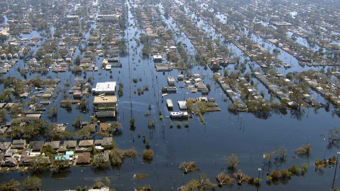 When the levees were breached in New Orleans during Hurricane Katrina, the Ninth Ward was inundated. Photo courtesy U.S. Coast Guard.