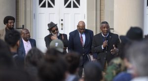 During the remembrance on the Fulton Chapel steps, Cole told the story of three white students who blocked his path to class one morning decades ago, forcing him to walk through the mud to step around them. He said those students didn’t anger him.
