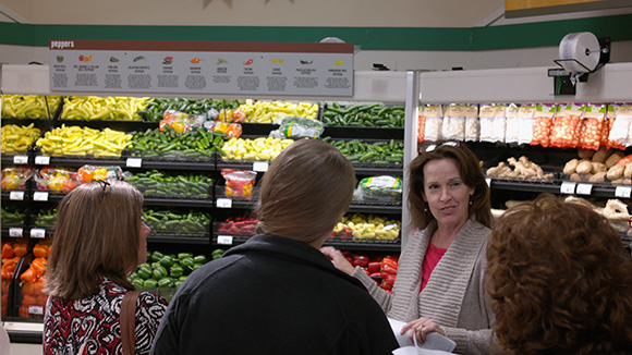 OXFORD, Miss. – Janie Cole, registered dietitian and adjunct professor in the Department of Nutrition and Hospitality Management at the University of Mississippi, leads a group of six through an Oxford grocery store.