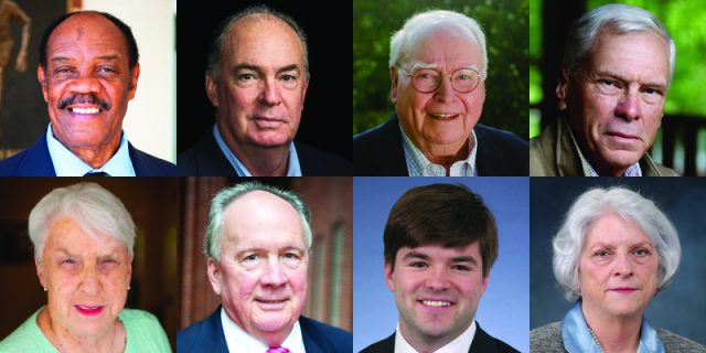 Those being recognized by the Ole Miss Alumni Association as distinguished alumni for 2021 are (top, from left) Coolidge Ball, Dan Goodgame, Richard O’Ferrall Jr. and Michael Stewart and (bottom) Judy Trott, Bill Gates, Hunter Howell and Gloria Kellum.