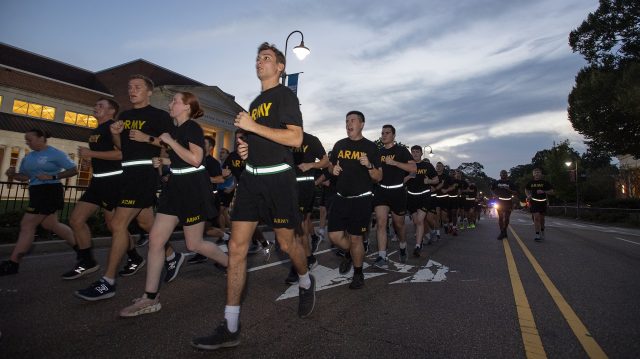 Members of the Ole Miss ROTC programs participate in the Members of the Ole Miss ROTC program will participate in the annual 9/11 Memorial Run in Oxford and on campus Saturday (Sept. 9) beginning at 7 a.m. at the Lyceum. Photo by Thomas Graning/Ole Miss Digital Imaging Services