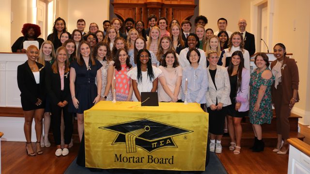 The newest members of the UM Tassels chapter of Mortar Board gather following their initiation ceremony in Paris-Yates Chapel. Submitted photo