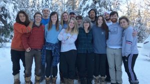 Front row: Wintergreen guides Joe Gleiter (left) and Isaak Ridge, and Ole Miss dog sledders Alison Walker, Rachel Whitehorn, Benita Whitehorn, Logan Vaughan, Pete Dawkins and Sarah Pringle; back row: Noah Allen, Lilli Gordon, Johnathan Taylor, Ashleen Williams, Francis Liaw and Tyler Tyree