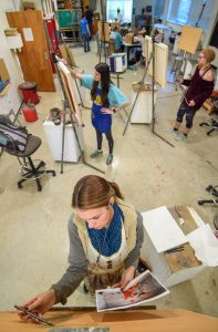 UM students work on creating artwork in a Meek Hall studio. An Ignite Ole Miss campaign is seeking to provide funds to improve the lighting in Gallery 130, where students stage exhibits of their works. Photo by Robert Jordan/Ole Miss Digital Imaging Services
