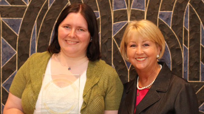 Mississippi first lady Deborah Bryant, right, congratulates Rosie Nelson for being named recipient of the inaugural Outstanding Service by a National Service Participant award by the Mississippi Commission for Volunteer Service. Photo by Elizabeth Nenon.