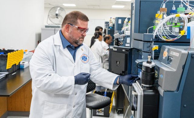 Chris McCurdy works in his lab at the University of Florida College of Pharmacy. The former Ole Miss pharmacy professor, who specializes in developing new drugs to treat pain, anxiety and substance abuse, is set to deliver the inaugural Ronald F. Borne Endowed Lecture on Friday at UM. Photo courtesy University of Florida