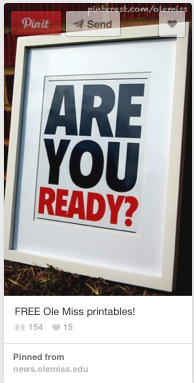 Free Ole Miss printables – To easily Ole Miss-ify your party, frame a few free Ole Miss printables. I think “Are You Ready,” would be an appropriate choice for this occasion. Download them here.