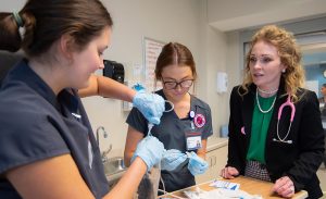 Leigh Holley, associate professor of nursing and assistant dean for School of Nursing’s Oxford Instructional Site, works with students at the South Oxford Center. The university is expanding its nursing program in Oxford next year to include a traditional bachelor’s degree program. Photo by Kevin Bain/Ole Miss Digital Imaging Services