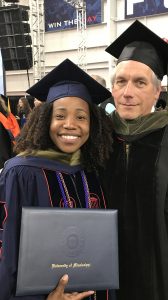 Kandis Backus, a 2017 UM pharmacy graduate, is congratulated at Commencement by Buddy Ogletree, clinical assistant professor of pharmacy practice. Backus is completing a community pharmacy residency at Walgreens in Jackson. Submitted photo