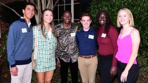 Brittney Reese (third from left) visits with some of the Ole Miss Women’s Council for Philanthropy Scholars after she was named the council’s Emerging Young Philanthropist. The students are (from left) Daneel Konnar, Miley Ray, Benton Donahue, Amyaha Graham and Nadia Corder. Photo by Joey Brent