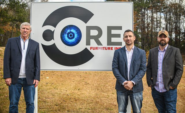 Chip Templeton (left), who is serving as director of the new Resources for International Success and Expansion Center, has a long history of counseling Mississippi small businesses, including Core Furniture owners Bryan Smith and Matt Shipton. Photo by Bruce Newman