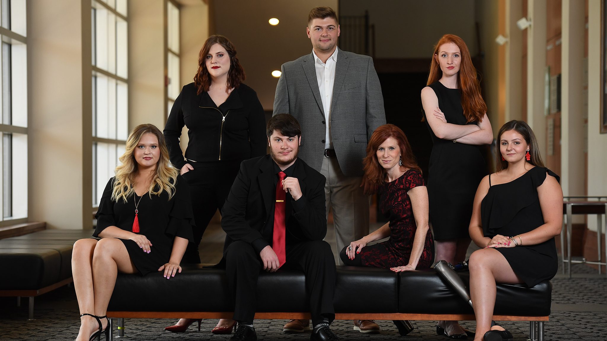 The Living Music Resource team for fall 2018 is (seated, from left) Carley Wilemon, Jesse Gibens, Nancy Maria Balach and Haley Tyrrell, and (standing, from left) Caitlin Richardson, Brady Bramlett and Ava Street. Photo by Kevin Bain/Ole Miss Digital Imaging Services