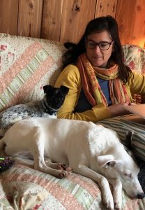 Melissa Ginsburg, a UM English professor, sits with her family dogs, Zimmy (center) and The Punisher. Submitted photo