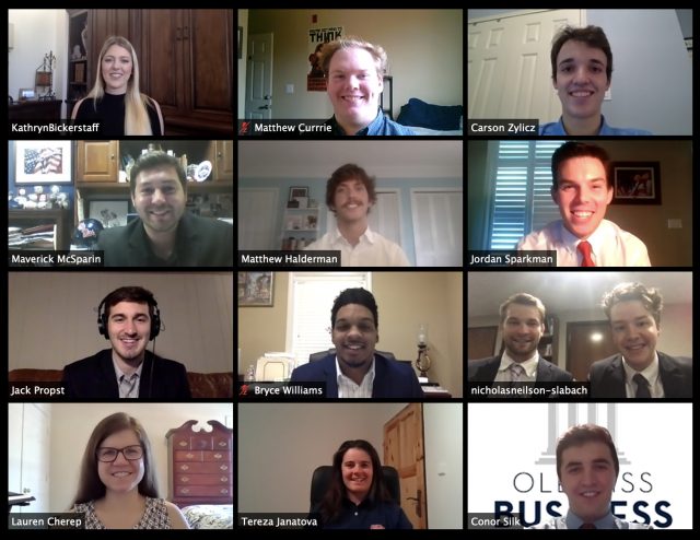 Some of the student participants in the 16th annual Gillespie Business Plan Competition present their proposals virtually to judges April 24. The competition is organized by the UM School of Business Administration and the Center for Innovation and Entrepreneurship. Screen shot by Tong Meng