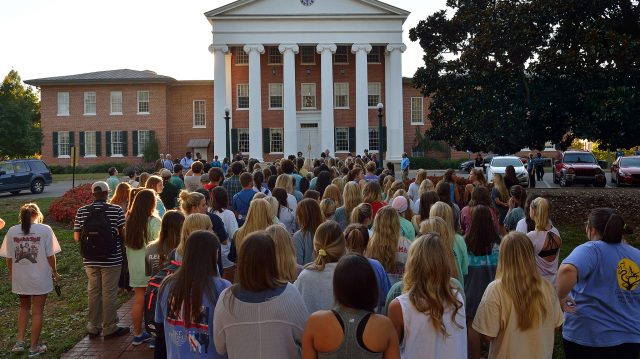 Ole Miss students gather for a candlelight vigil after one of the many active shooter situations in public places in the United States in the last 10 years. UM professor Ana Velitchkova will spend the next semester at the University of Notre Dame studying the sociological patterns of mass shooters, active shooters and extremist groups. Photo by Thomas Graning/Ole Miss Digital Imaging Services