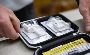 Chad Westmoreland, a pharmacist at University Health Services, checks a naloxone kit. A recent paper from the School of Pharmacy found that the lifesaving drug naloxone is unavailable in more than 40% of Mississippi pharmacies. Photo by Thomas Graning/Ole Miss Digital Imaging Services