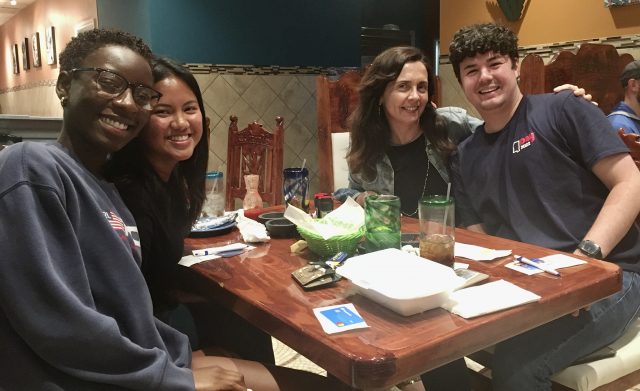 Spanish professor Carmen Sanchis-Sinisterra (second from right) spends time with Ole Miss Spanish language students (from left) Te’keyra Shelton, of Tupelo; Olivia Reeves, of Sulphur, Louisiana; and Landon Bradley, of Laurel. Sanchis-Sinisterra has been chosen for the 2023-24 cohort of the Engaged Scholars Initiative by Campus Compact. Submitted photo