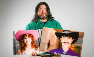 Kevin Cozart, operations coordinator in the Sarah Isom Center for Women and Gender Studies, displays photo portraits of LGBTQ Mississippians that he captured during his staff creative residency. Photo by Bruce Newman Photography