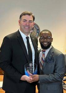 Mississippi Secretary of State Michael Watson (left) presents Ole Miss senior Bobby Hudson III with his John Lewis Youth Leadership Award at the state Capitol. Submitted photo