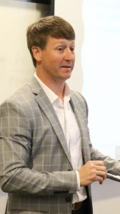 Wealth adviser and UM School of Law alumnus David McPhail speaks to law students during a financial literacy program about managing budgets. Photo by Christina Steube/School of Law