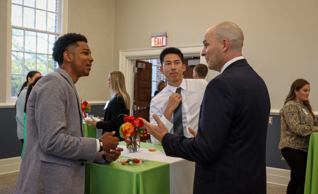 Ole Miss business students interact with industry professionals at the recent BASE Bootcamp, hosted by the School of Business Administration. A gift by Harlene and Patrick Cavanaugh will support scholarships for students participating in BASE-related programming. Photo by Mary Knight/University Development