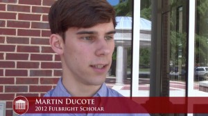 Martin Ducote, 2012 UM Fulbright Scholar gives credits to his friendships made at Ole Miss and his professors for enabling him to receive the national honor. Video by Mary Stanton.