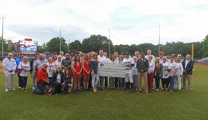 Members of the Ernie LaBarge Bullpen Club present the Ole Miss Athletics Foundation with a $150,000 gift to be used for stadium enhancements that will benefit student-athletes. Submitted photo