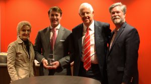 Following the announcement of the winners, Lawrence and Jan Farrington presented Hunter Carpenter, a partner in Redbird Capital Partners in Dallas, with the Farrington Distinguished Entrepreneur of the Year award.