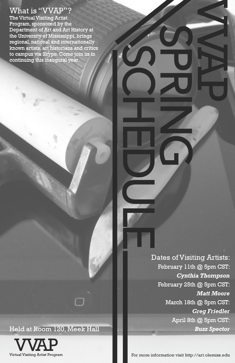 The Virtual Visiting Artist Program, or VVAP, uses Skype to host four separate artist lectures throughout the spring semester. The lectures will provide students’ access to artists that currently live, work and practice in the field, but cannot visit campus in person.