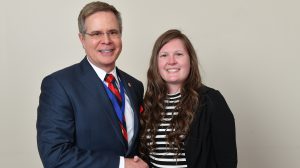 Chancellor Jeffrey Vitter congratulates Bethany Miller on being awarded a Taylor Medal. Photo by Robert Jordan/Ole Miss Communications