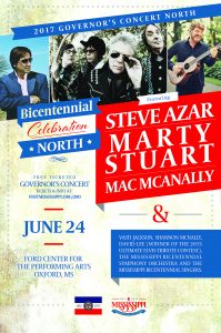 OXFORD, Miss. – The Governor’s Concert at the Mississippi Bicentennial Celebration North is set for Saturday in the Grove at the University of Mississippi as part of a weekend-long celebration of 200 years of statehood.