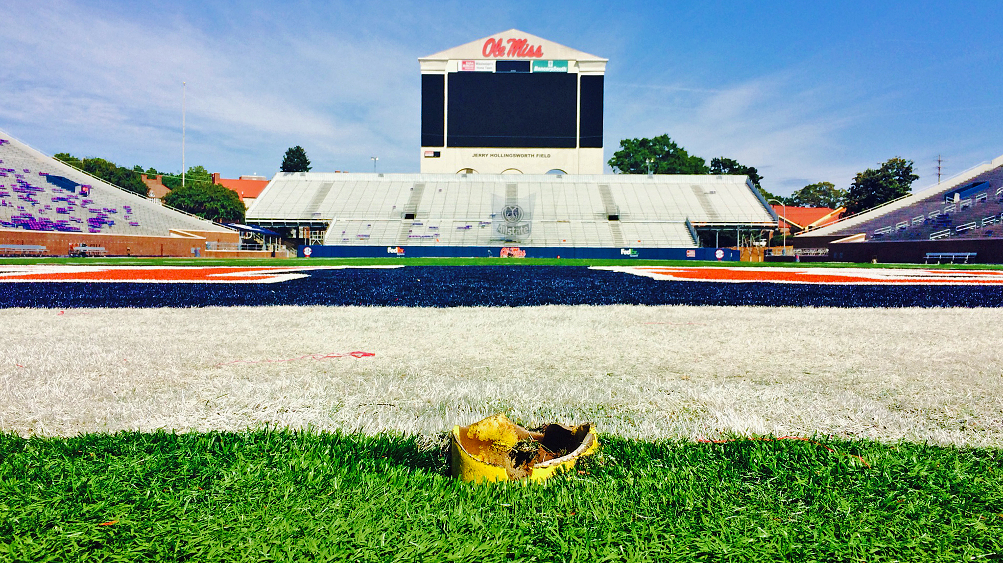 Remnants of the goal post remain at Vaught-Hemingway Stadium following the Oct. 4 Ole Miss football win over No. 1 Alabama