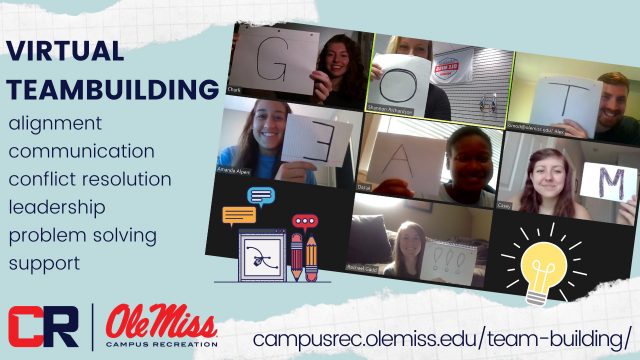 OXFORD, Miss. – Virtual team-building sessions are available to University of Mississippi registered student organizations, university departments and off-campus groups.