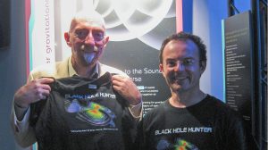UM physics professor Marco Cavaglia, right, shares a T-shirt with Kip Thorne, one of three recipients of the 2017 Nobel Prize in physics. Submitted photo.