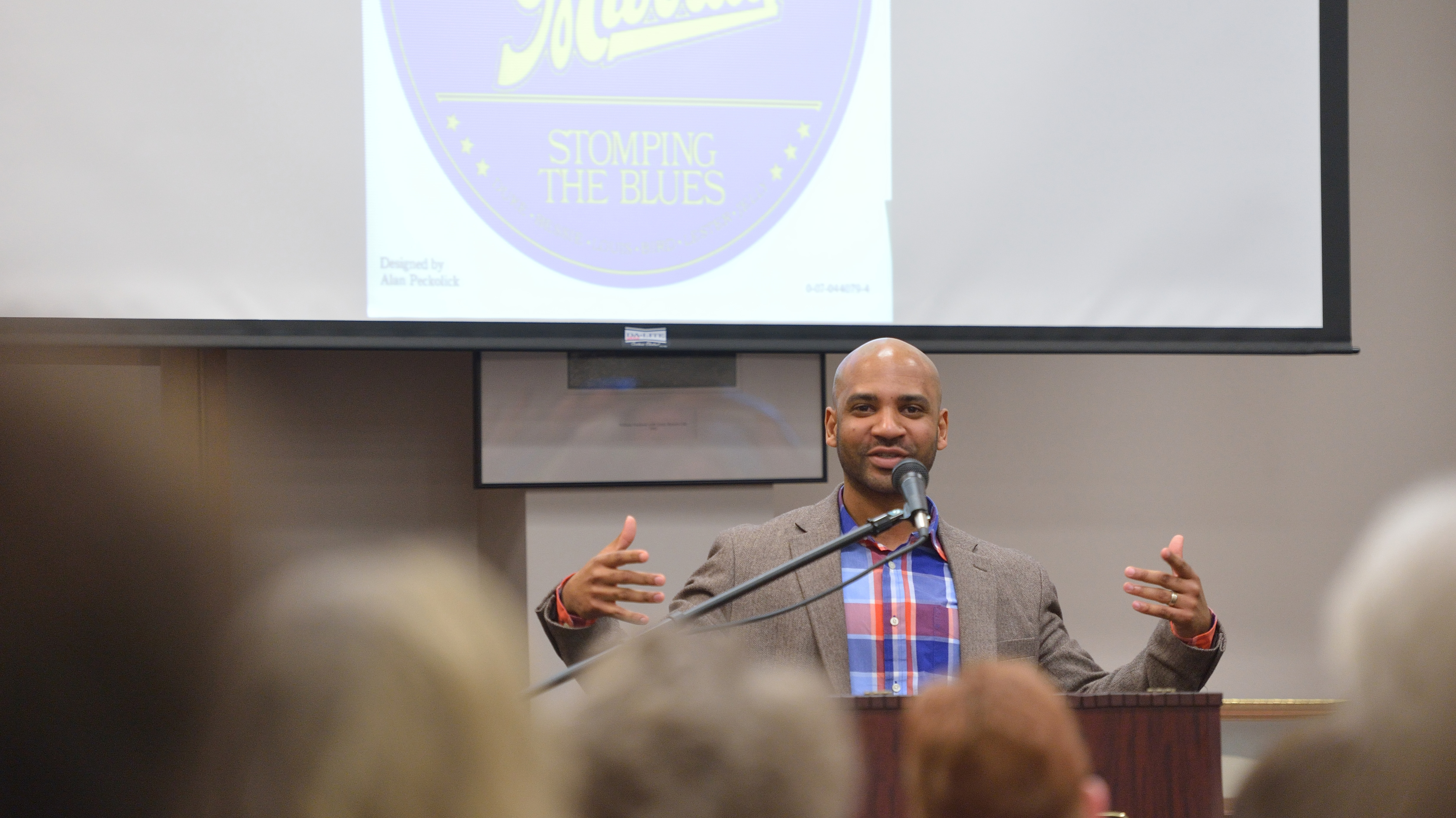 Derrick Harriell, assistant professor of English and African-American Studies, speaks at the Oxford Conference for the Book.