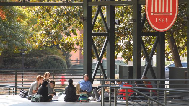 A professor takes advantage of cooler weather to have class on the Grove stage. UM is ranked in the top 100 among public universities, according to the 2022-23 U.S. News & World Report ‘Best Colleges’ rankings. Coming in at No. 72, it is the highest-ranked university in the state and also is recognized as a ‘Best Value’ school. Photo by Thomas Graning/Ole Miss Digital Imaging Services