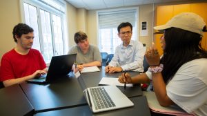 Computer science students discuss a project at Ole Miss, which is the highest-ranked university in the state in the latest U.S. News & World Report survey and also is recognized as a ‘Best Value’ school. Photo by Kevin Bain/Ole Miss Digital Imaging Services