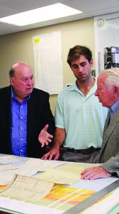 Julius Ridgway (left) discusses the possibilities of using old oil data with geological engineering major Nick Sullivan and Roger Young. Archive photo from 2014-15 Ole Miss Engineer
