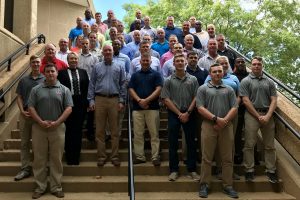 A group of Mississippi National Guard senior leaders gather at the University of Mississippi to participate in leadership development conducted by the university’s Center for Intelligence and Security Studies, which is part of the national Intelligence Community Centers of Academic Excellence program. Photo courtesy of Mississippi National Guard