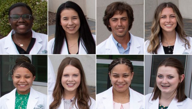 UM students who have been selected for the undergraduate portion of this year’s Mississippi Rural Physicians Scholarship Program are (top row, from left) Deshauntra Green, Karina Rodriguez-Castillo, Shade Smith and Grace Pipkin and (bottom row, from left) Jazmin King, Liz Sprabery, Jada King and Katherine Morgan. Photos by Jay Ferchaud/UM Medical Center