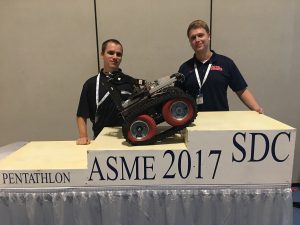 The 2017 American Society of Mechanical Engineers Student Design Competition (The Robot Pentathlon: Citius, Altius, Ingenious) challenged each team to create a fast, strong and agile robot. Each team was also expected to build a device to remotely control its robot and compete against others in five different events – a robot pentathlon.