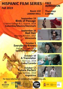 The UM Department of Modern Languages presents the annual film series, which runs through Oct. 15. Each movie has English subtitles and will be screened at 6 p.m. Thursdays in Lamar Hall, Room 132. The first screening is Sept. 19.