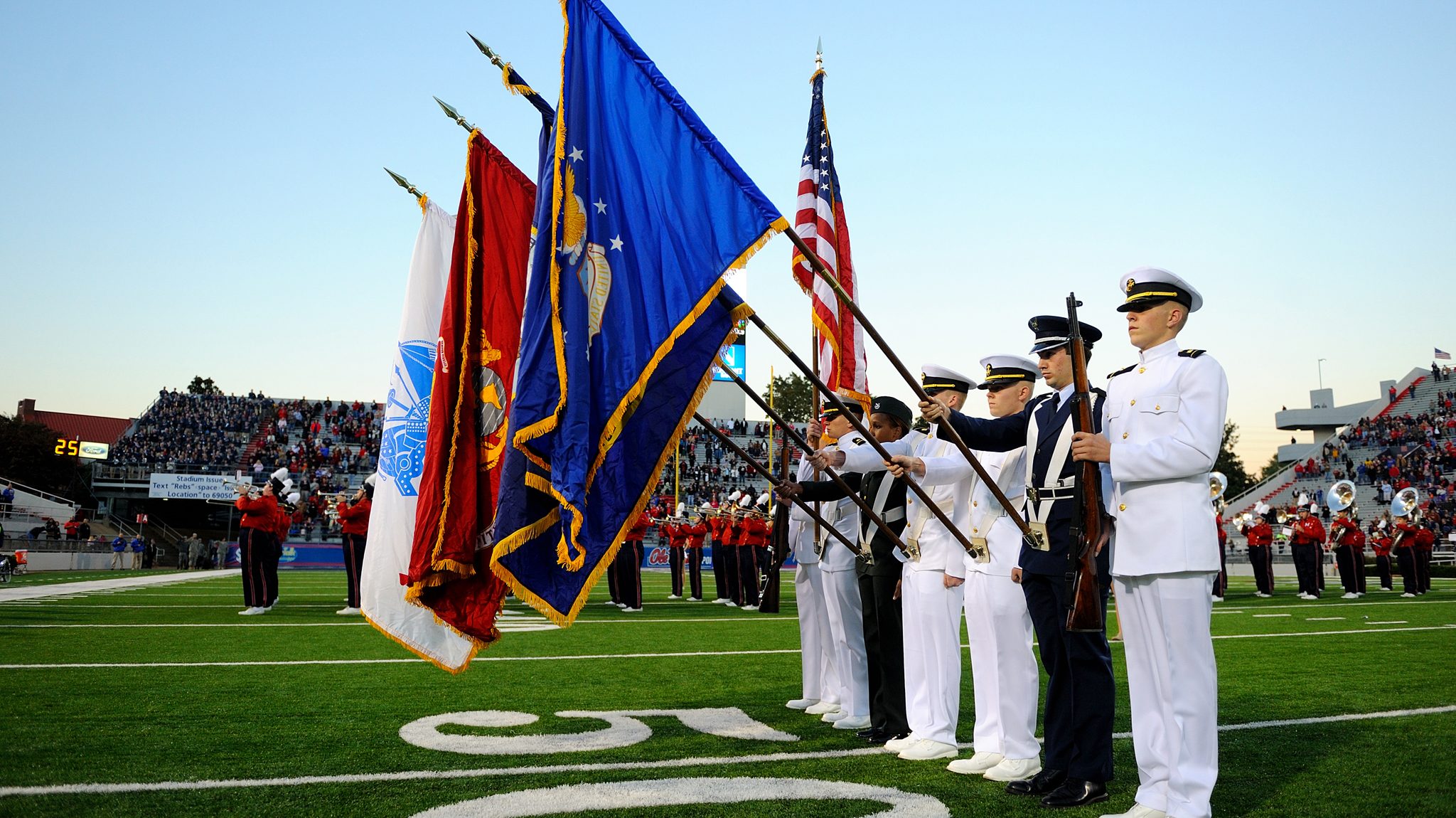 ROTC cadets from the Army, Navy, Air Force and Marines will be honored on the field at halftime of the military appreciation game against South Carolina. The game is part of the Warrior Week festivities. Photo by Robert Jordan/Ole Miss Digital Imaging Services