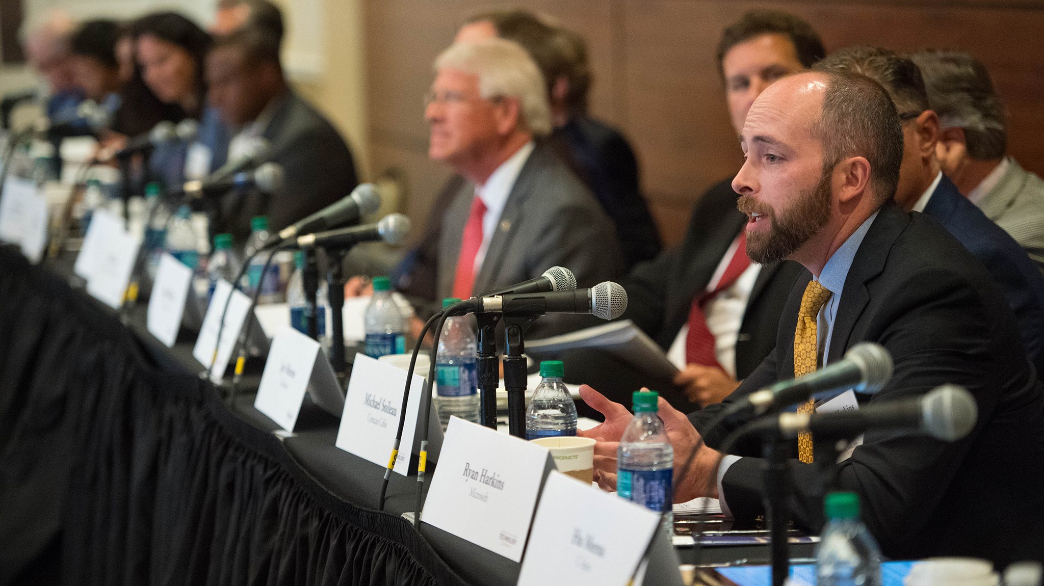Ryan Harkins, director of state affairs and public policy at Microsoft, speaks at the 2017 Tech Summit. Photo by Kevin Bain/Ole Miss Digital Imaging Services