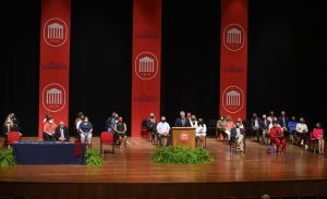 The university employees received either a bachelor’s, master’s or doctoral degree during the 2019-20 or 2020-21 academic years. Held at the Gertrude C. Ford Center for the Performing Arts, the celebration was open to last year’s graduates because the planned 2020 celebration was postponed due to the COVID-19 pandemic.
