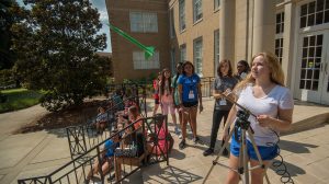 Archive Photo: Ole Miss student Maggie Craze (right) helps participants at a STEM-themed summer camp launch paper rockets they designed and constructed during the program. The university’s Office of Pre-College programs offers several summer options to give middle schoolers hands-on experience with STEM fields as they participate in unique activities and experiments. Photo by Kevin Bain/Ole Miss Digital Imaging Services
