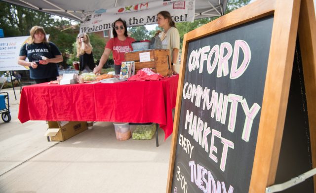 One of the Community Engaged Partnership Development Fund grants awarded this year aims to expand marketing efforts for farmers markets hosted at the university in partnership with the Oxford Community Market organization. Photo by Kevin Bain/Ole Miss Digital Imaging Services
