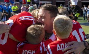 OXFORD, Miss. – Four young boys ran into their father’s arms Saturday (Nov. 4) in Vaught-Hemingway Stadium, kneeling and crying as they met him on the field.