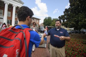 Smith hands out popsicles to Ole Miss students during Welcome Week 2017. Photo by Thomas Graning/Ole Miss Digital Imaging Services