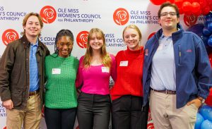 Ole Miss students and Women’s Council Scholars (from left) Davis Brewer, Madison DeVaul, Kaitlyn White, Nadia Corder and Dylan May attend the program honoring servant leader Tywanna Smith. Smith was named the council’s 2023 Emerging Young Philanthropist. Photo by Amy Howell/University Development